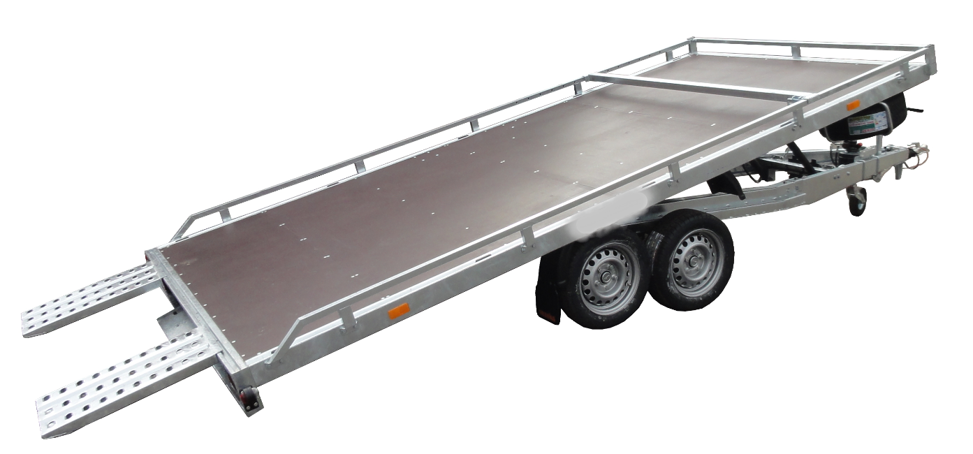 bržděný, sklopný, celková 2700kg, nostost 2000kg, kotvící oka, kurty,