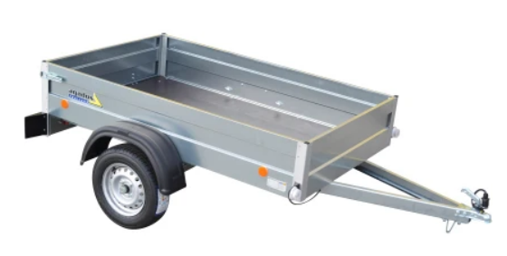 Nebržděný do 750 kg, výklopný, možnost sundat bočnice-plato, kotvící oka, kolečko